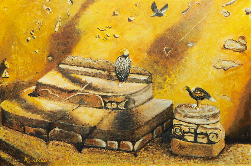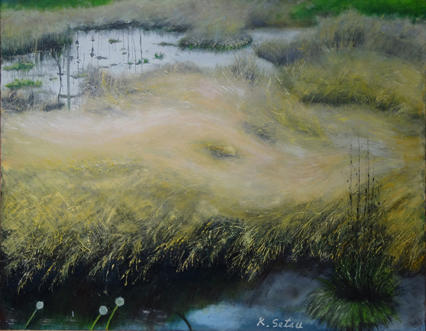 第19回 秋季展 水溜りと雑草 F50 油彩 2015年