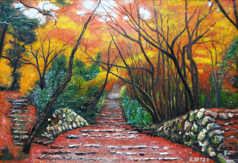 第20回 秋季展 古刹への参道 P50 油彩 2016年