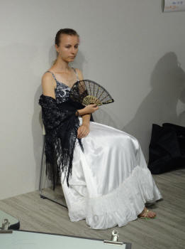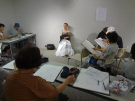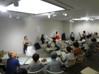 2月に試みましたデッサン会でしたが、 8月9日に市美協の正式行事として第1回を開催しました。 場所はにぎわい創造館が改装中のため、 市民ギャラリーのギャラリー1です。 会員25人と会員以外の方6人の 計31人の参加がありました。 招いたモデルは女性2人で、 それぞれに魅力的なドレスを着てもらいました。