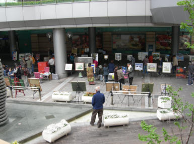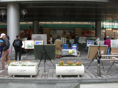 気軽に絵を楽しむ市民 車椅子 ペットとと共に 買い物のついでに