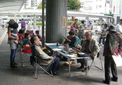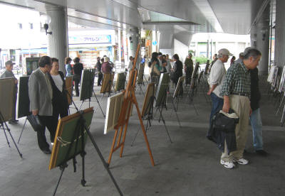 今回のイベントは好天に恵まれ、秋のさわやかな空気の中で行なわれました 飛び入りや他市からの参加も増え、京阪沿線の芸術を愛する人々が集う雰囲気が徐々にできつつある兆しも感じました 寝屋川市美協に加わりたいという希望者も何人かおられ絵画に対する刺激も感じられたのではないかと思います