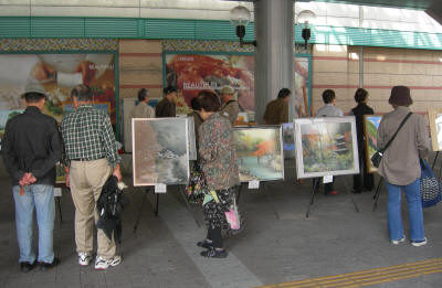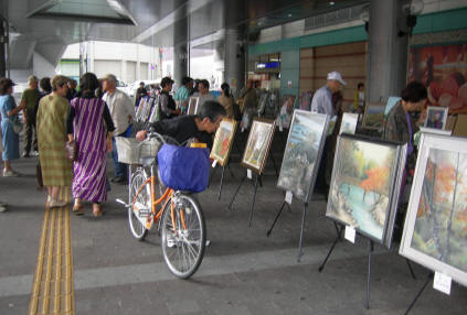 気軽に絵を楽しむ市民 車椅子 ペットとと共に 買い物のついでに