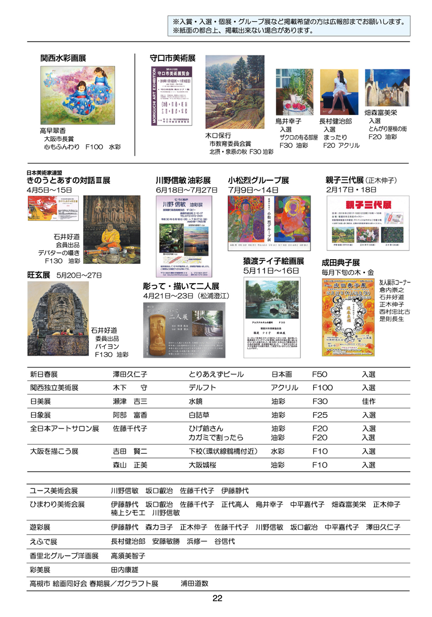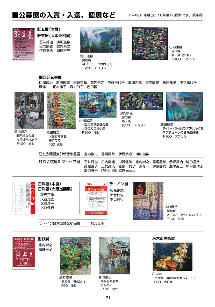 会報アート21号(2019)より 2018年度入賞など
