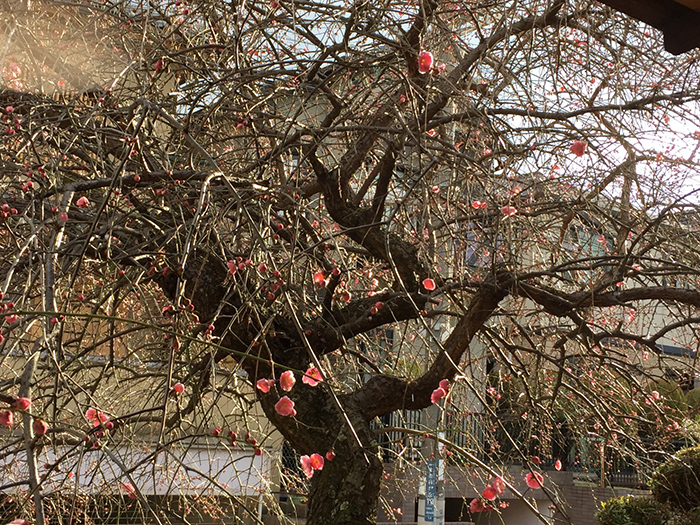 寝屋川市ー打上治水緑地公園としだれ梅の写生会が ありました 外は寒いので、伊地智宅のしだれ梅の 写生会になりました