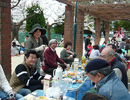 桜が満開なので、昼から花見会になりました