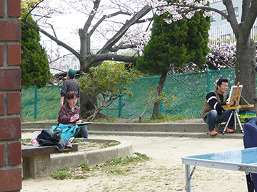 4月6日、寝屋川市友路岐緑地・たこ公園付近で 写生会になりました